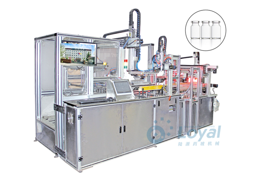 西林瓶生產(chǎn)線包括:自動(dòng)上管、自動(dòng)成型、經(jīng)機(jī)械手轉(zhuǎn)換至前端檢測線(也叫生產(chǎn)管控)、檢測線檢測的項(xiàng)目:1、瓶口內(nèi)外徑 2、瓶身長短 3、瓶身外徑 4、瓶口邊厚 5、瓶底內(nèi)凹尺寸檢測;經(jīng)檢測后的合格品再用機(jī)械手夾盤轉(zhuǎn)換至退火爐網(wǎng)帶上,經(jīng)高溫減除應(yīng)力后再降溫,通過氣動(dòng)吸盤將回火后的小瓶轉(zhuǎn)換至后端檢測線,后端檢測(也是重檢也叫終檢),經(jīng)后端拍照檢測項(xiàng)目